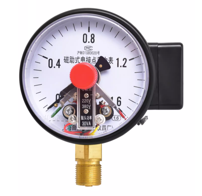 磁助式電接點(diǎn)壓力表廣泛應(yīng)用于石油、化工、冶金、電站等工業(yè)部門(mén)或機(jī)電設(shè)備配套中測(cè)量無(wú)爆炸危險(xiǎn)的各種流體介質(zhì)的壓力。通常,磁助電接點(diǎn)壓力表經(jīng)與相應(yīng)的電氣器件(如繼電器及接觸器等)配套使用,即可對(duì)被測(cè)(控